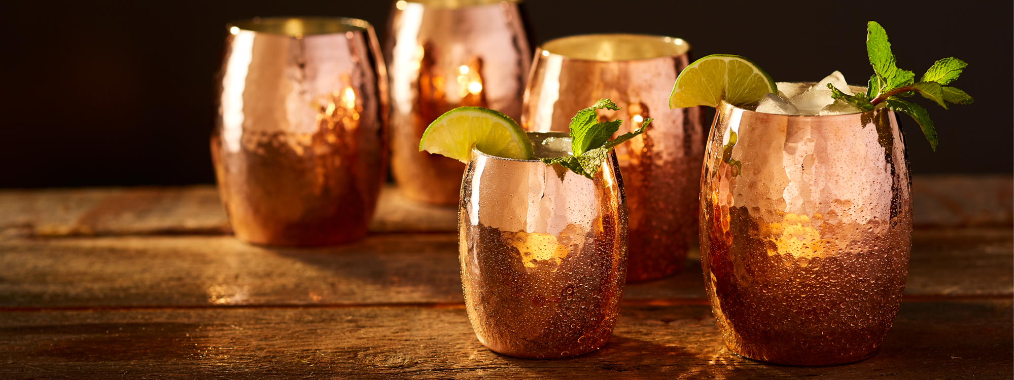 Made from only the highest quality PURE .999 COPPER. Our top copper line is hand forged, hammered and PURE .999 SILVER lined. Silver, bronze and stainless are incorporated to some products bringing them to the next level in barware. The quality speaks for itself from the hand riveted handles to the hammered texture that makes each and every product one of a kind.